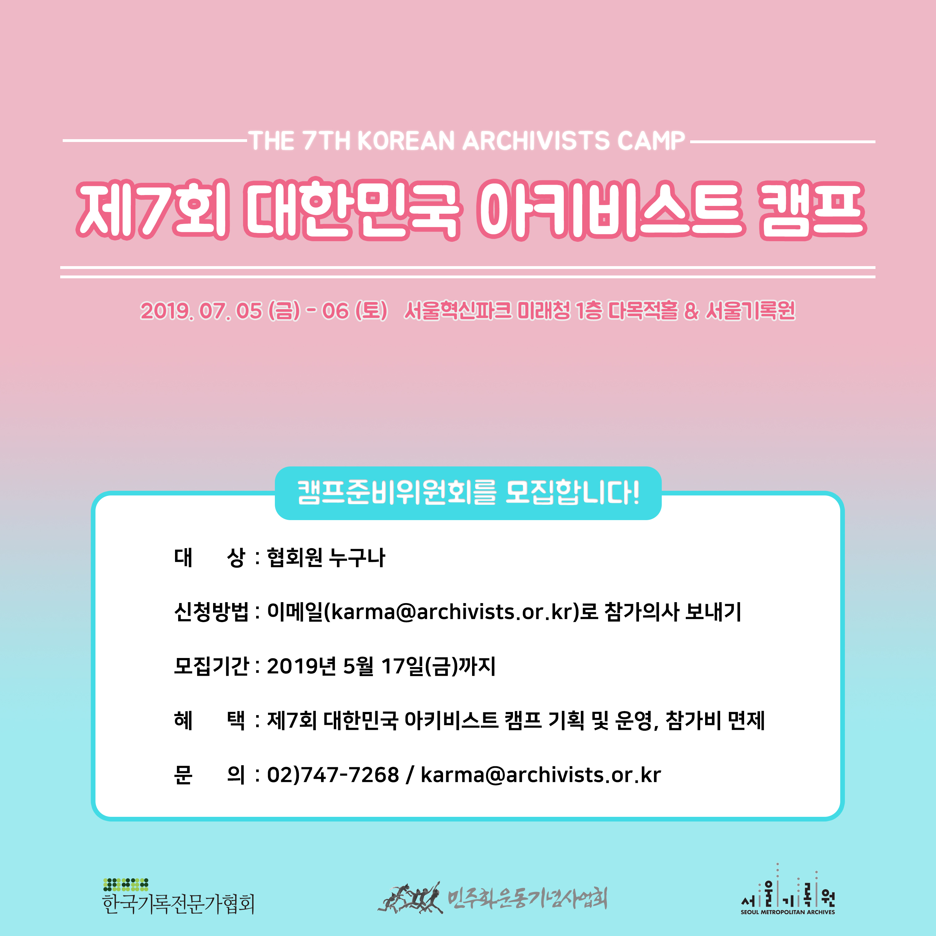 [D-60(-1)] 제7회 대한민국 아키비스트 캠프 캠프준비위원회 모집 안내