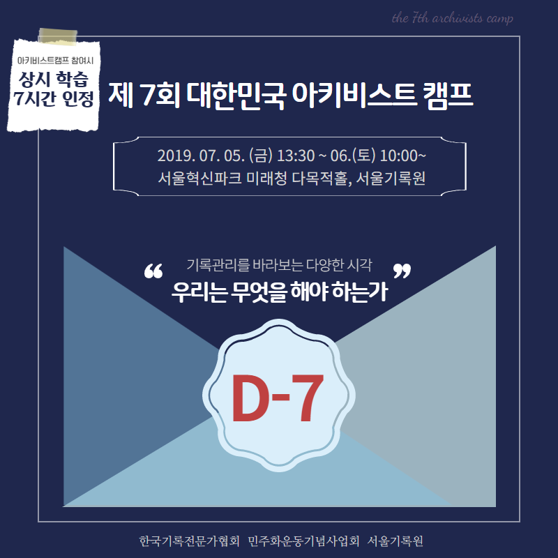제7회 대한민국 아키비스트 캠프가 일주일 앞으로 다가왔습니다.