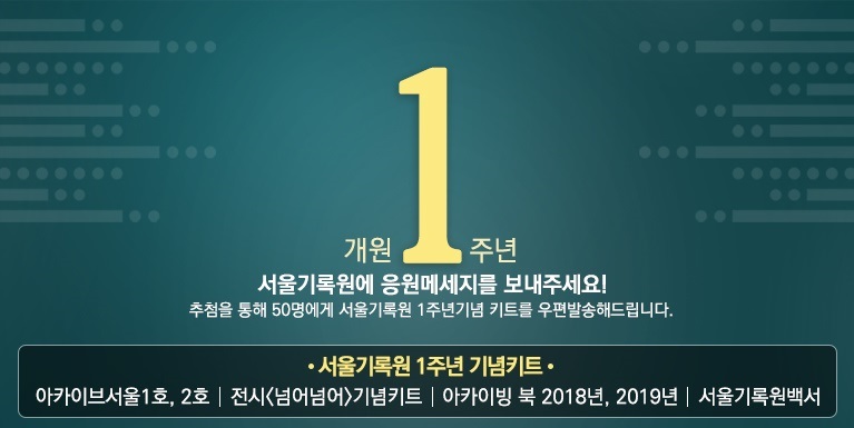 추첨을 통해 50분에게 서울기록원 1주년기념 키트를 우편으로 발송해드립니다.