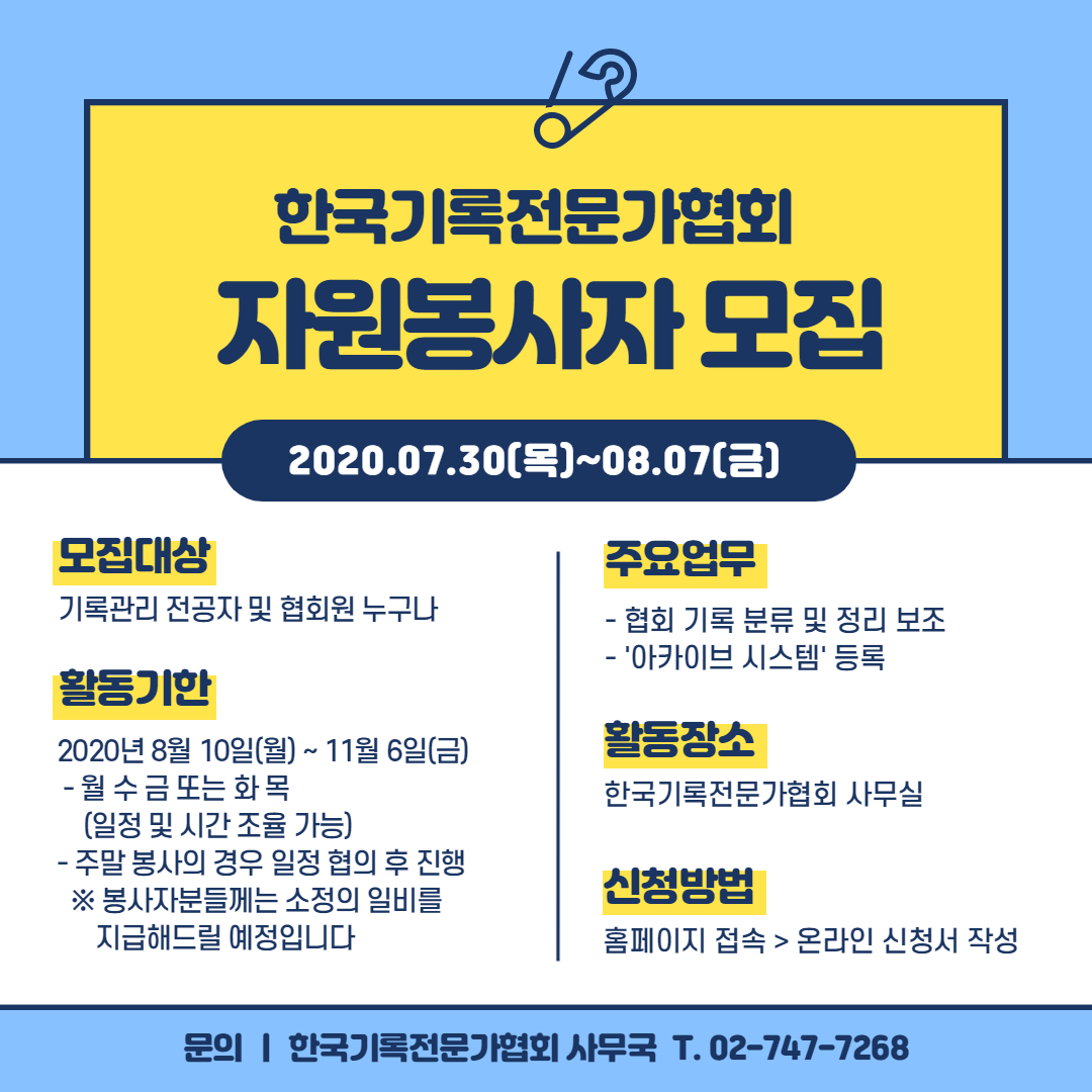 [공지] 한국기록전문가협회 자원봉사자 모집 안내