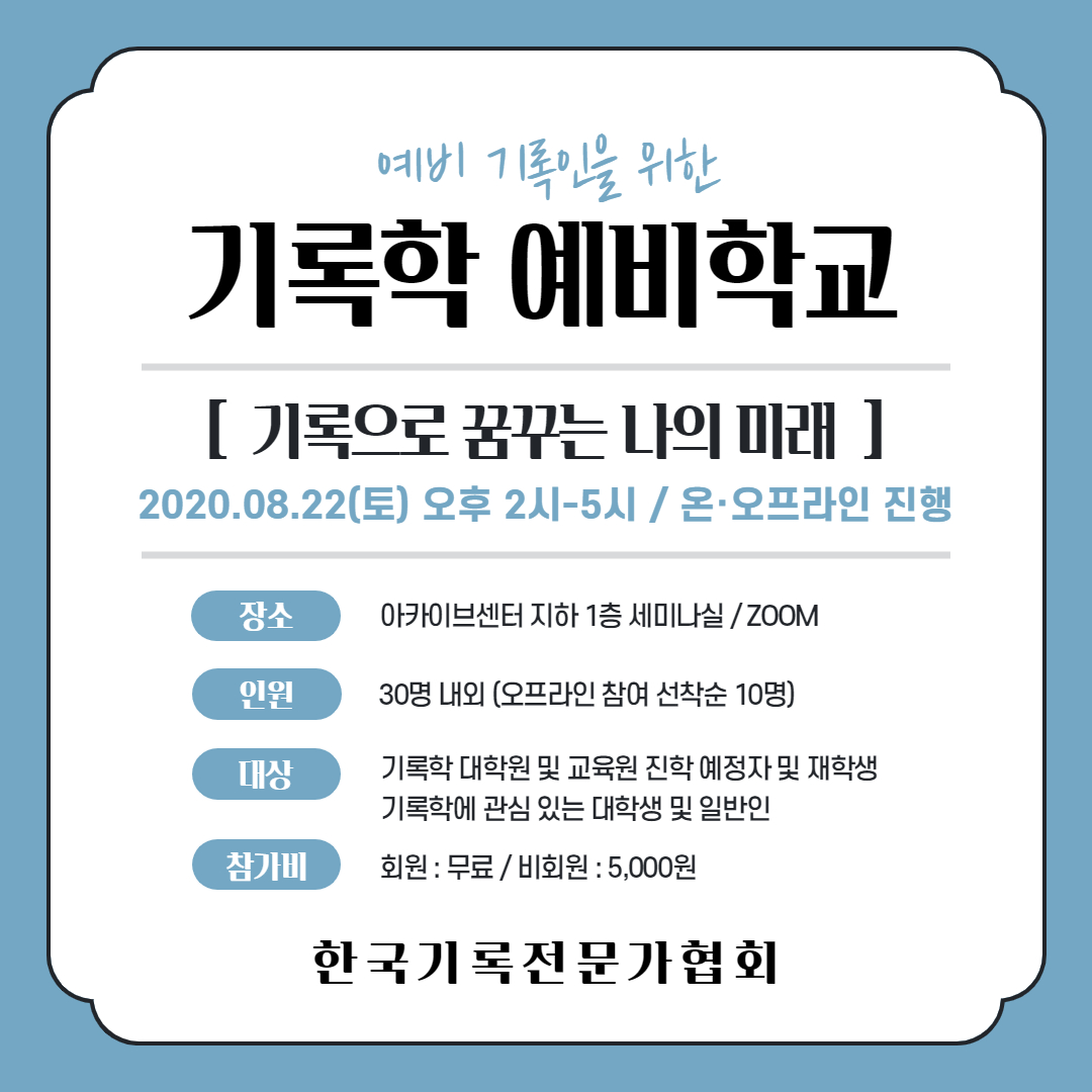 2020. 8. 10. 17:16ㆍ교육사업/기록학 예비학교