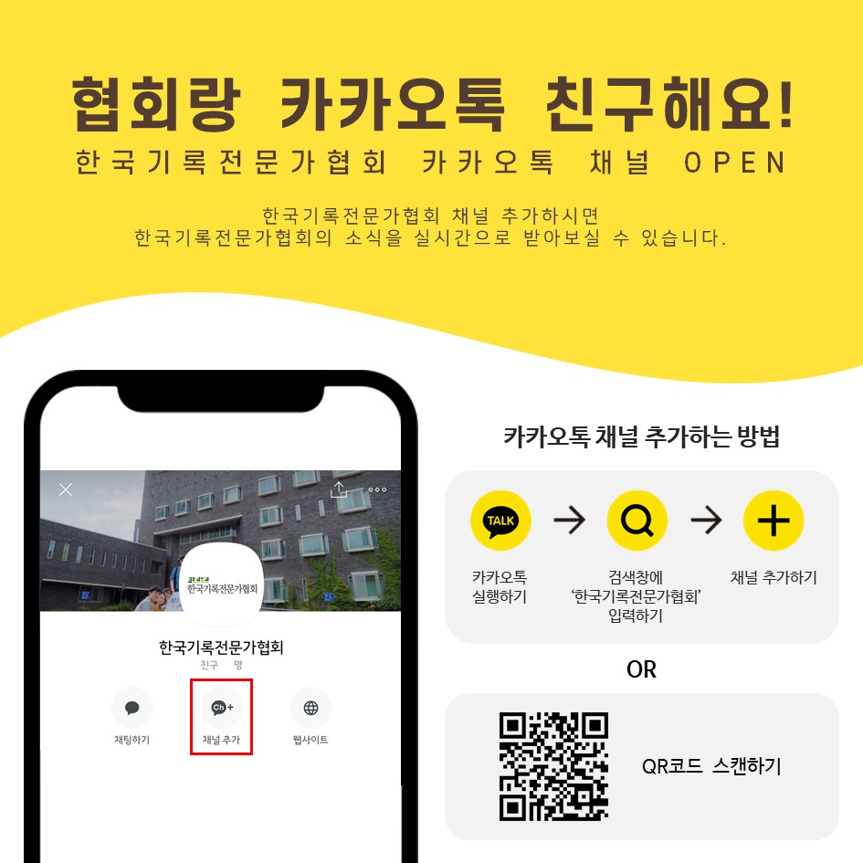 [안내] 한국기록전문가협회 카카오톡 채널 오픈