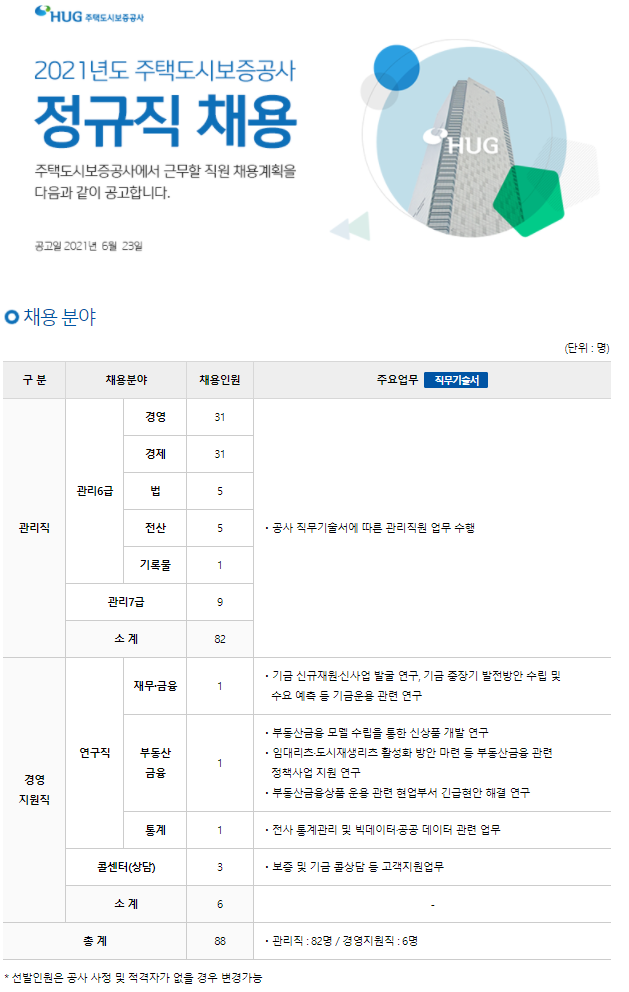 [채용공고] 주택도시보증공사 정규직 기록물관리 채용 공고