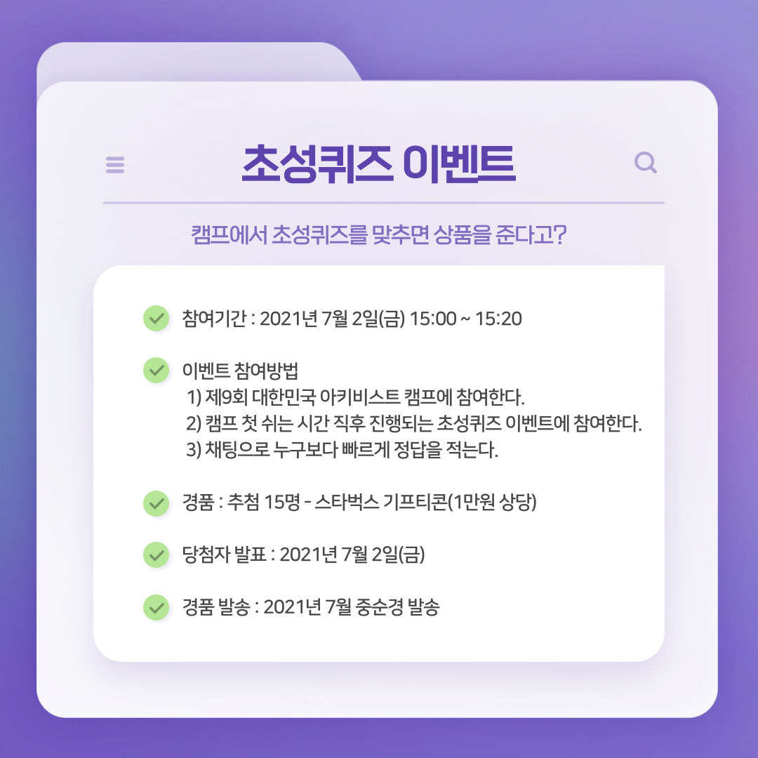 2) 캠프 첫 쉬는 시간 직후 진행되는 초성퀴즈 이벤트에 참여한다.