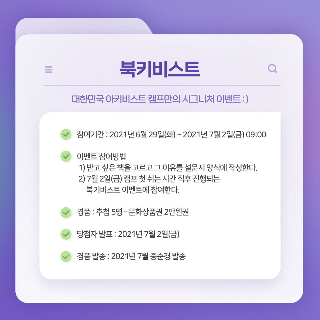 2) 7월 2일(금) 캠프 첫 쉬는 시간 직후 진행되는 북키비스트 이벤트에 참여한다.