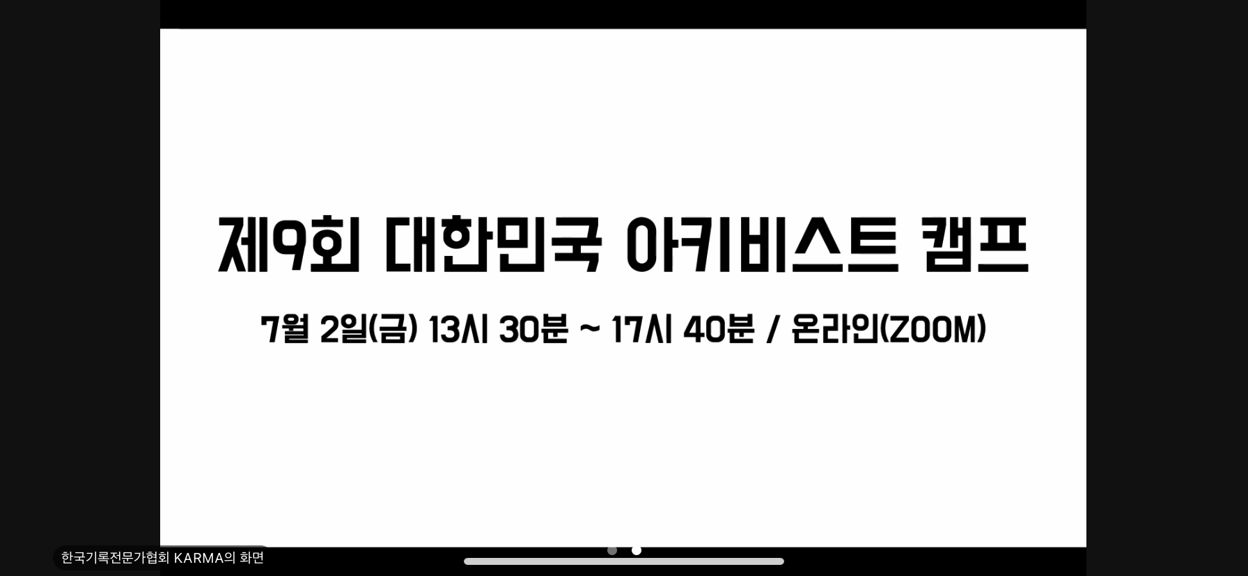 ● 7월 2일(금) 대한민국 아키비스트 캠프의 ZOOM 화면 (2개)
