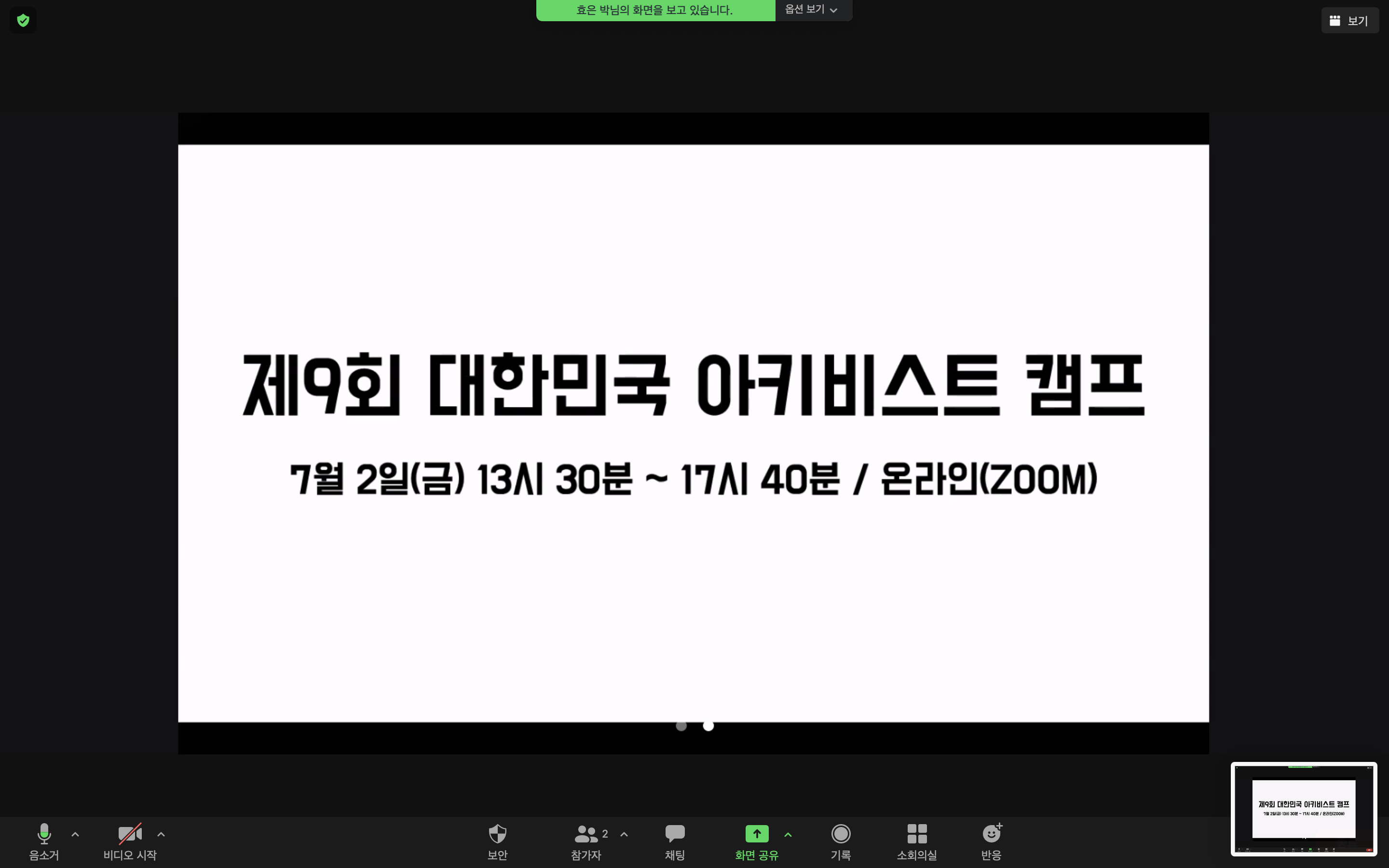 1️⃣ 대한민국 아키비스트 캠프 개회 화면 (캠프 시작 시간 - 13:30)