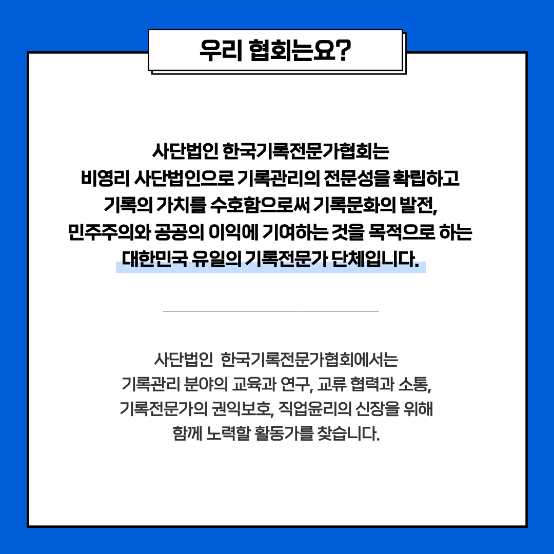 대한민국 유일의 기록전문가 단체입니다.