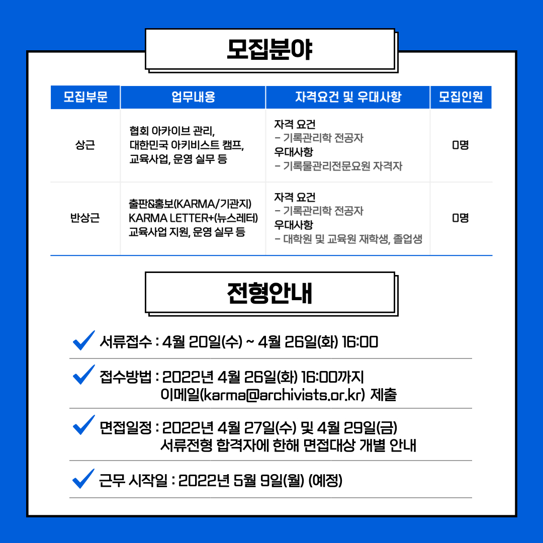 - 문의: 02)747-7268 / karma@archivists.or.kr