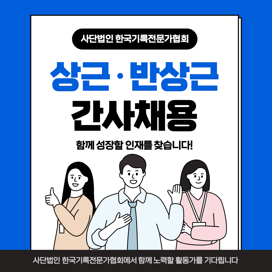 - 상근 간사: 기록관리학 전공자(기록물관리전문요원 자격자 우대)