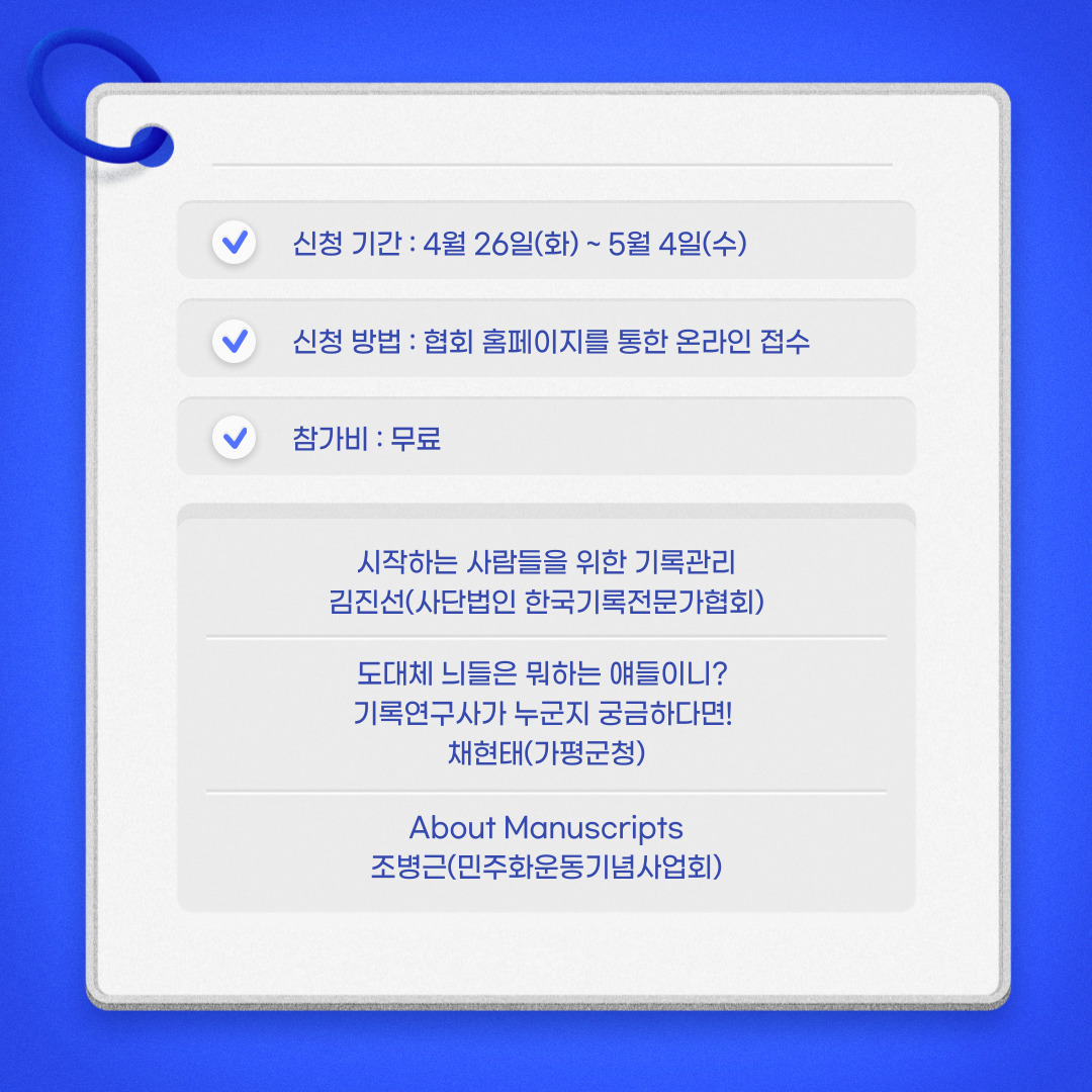 예비 기록전문가분들의 많은 관심과 참여 부탁드립니다.