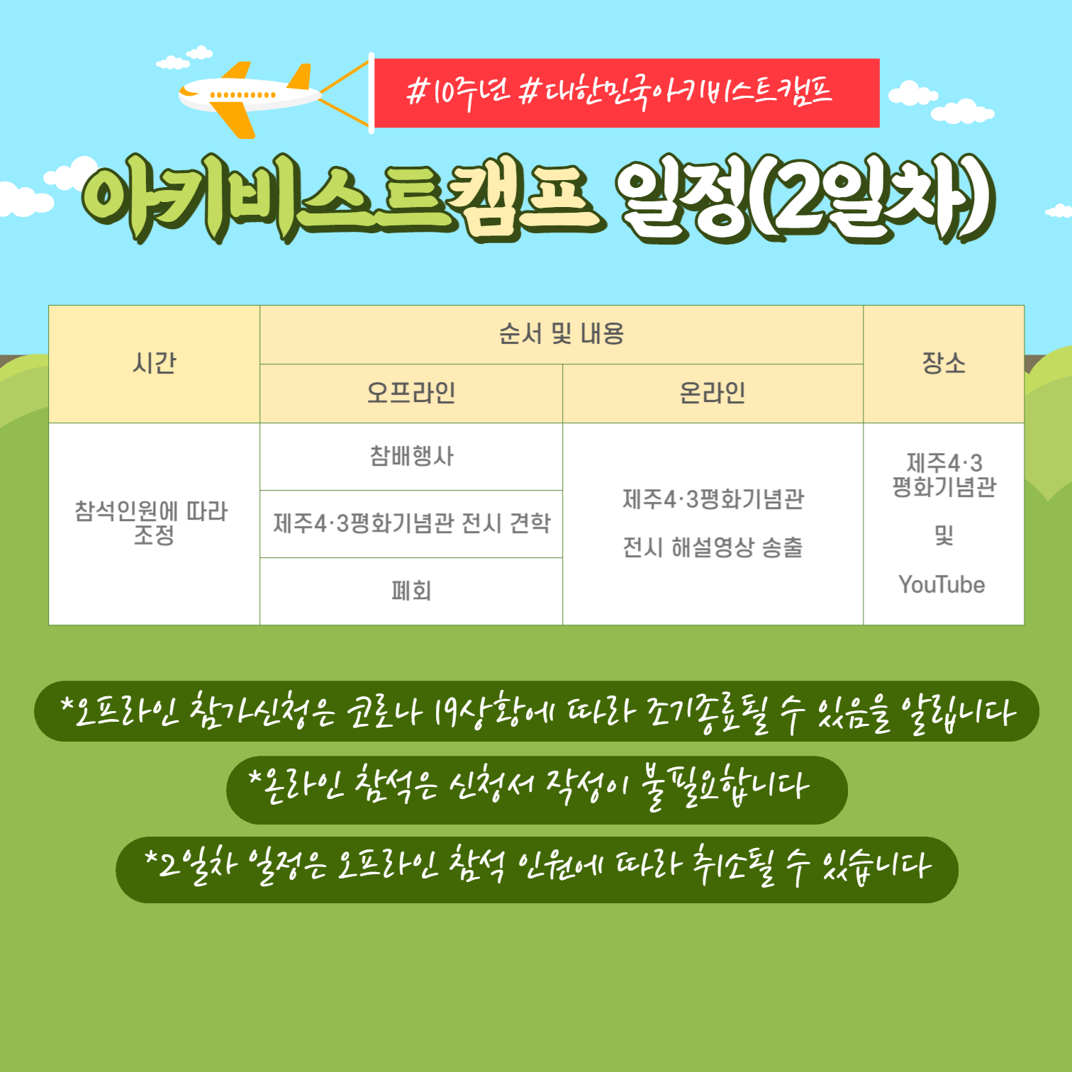 - 장소 : 온․오프라인 병행 (제주 4 ·3 평화공원 내 평화교육센터(어린이체험관) 및 Youtube)