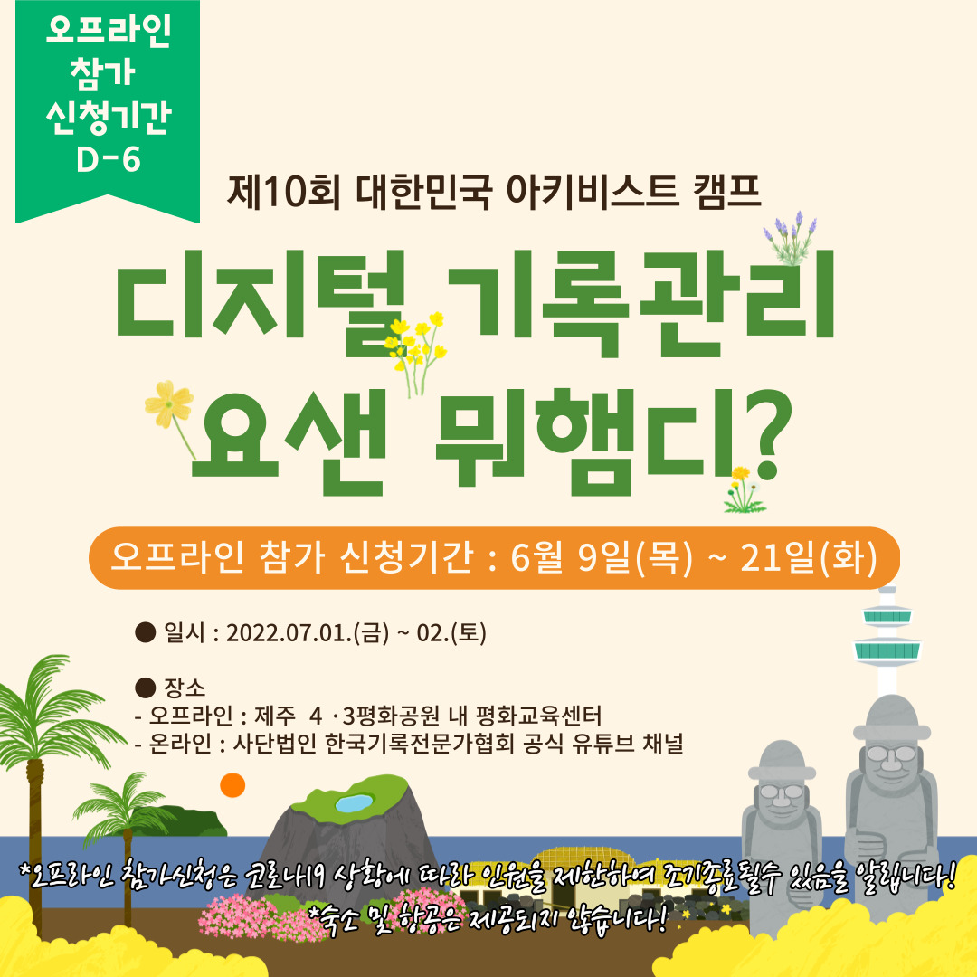 제10회 대한민국 아키비스트 캠프 오프라인 참가신청기간이 6일 남았습니다.
