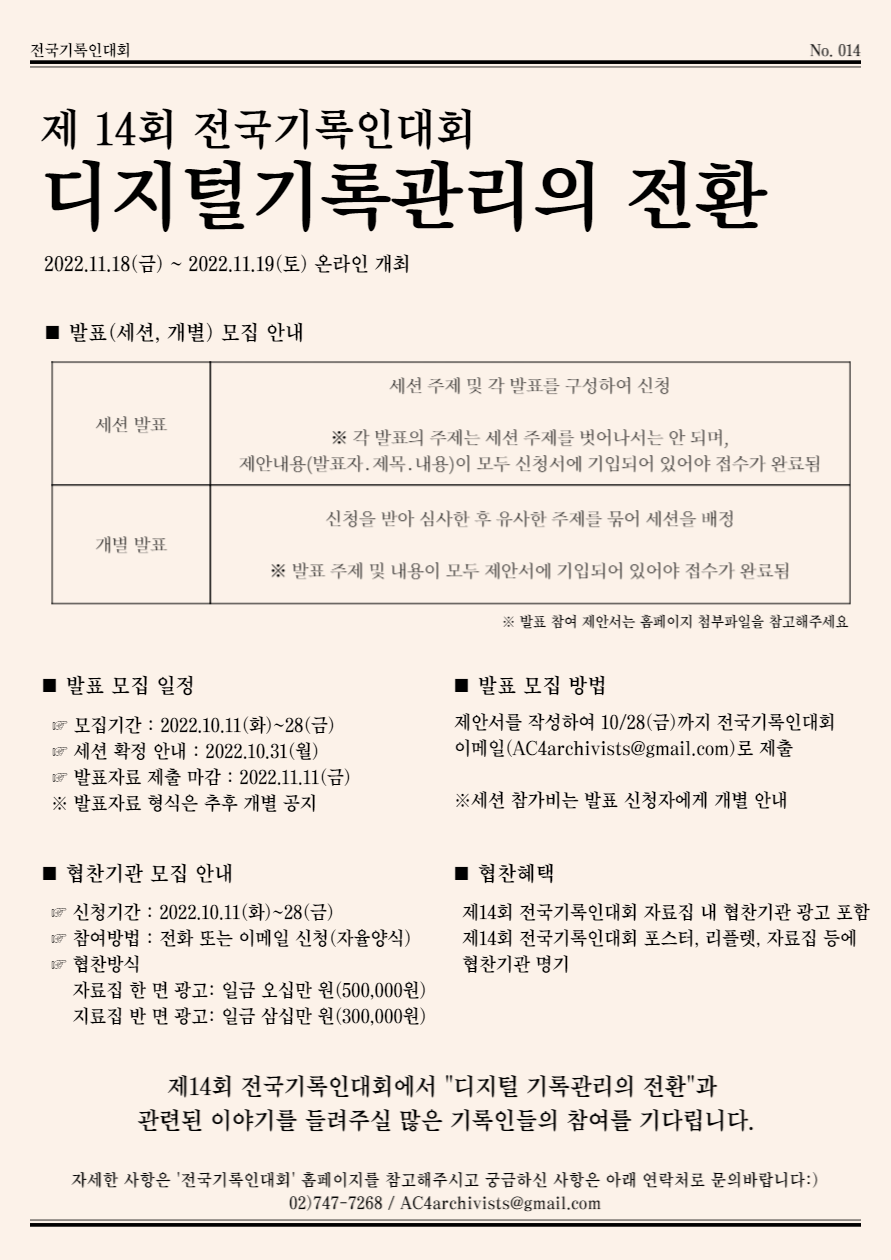 (전국기록인대회 이메일: AC4archivists@gmail.com)