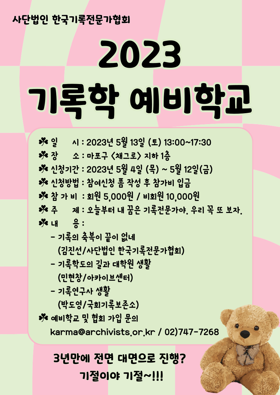 * 예비학교 및 회원가입 문의 : karma@archivists.or.kr/ 02-747-7268