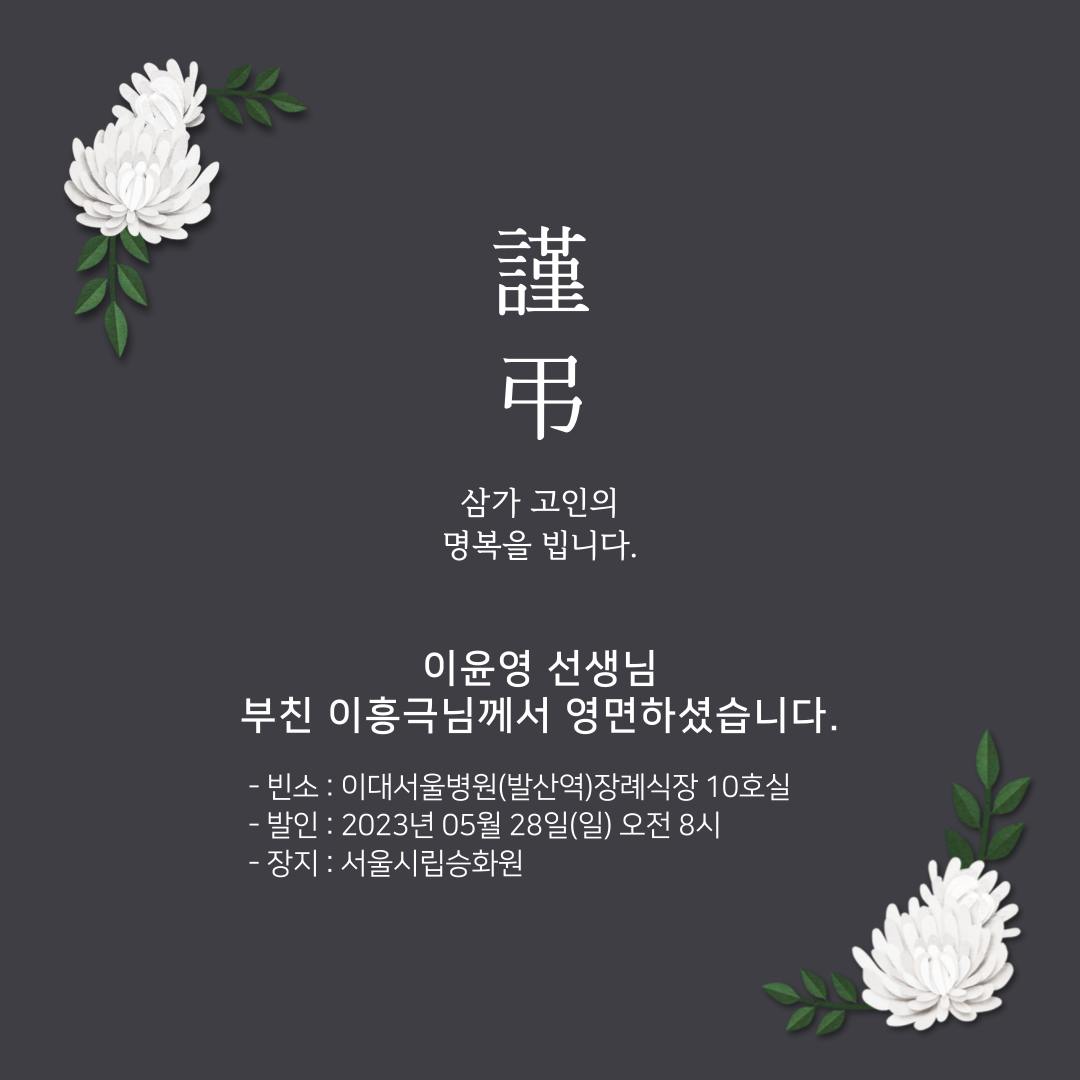 | [부고] 조지영 선생님 시부상 (0) | 2023.11.02 |