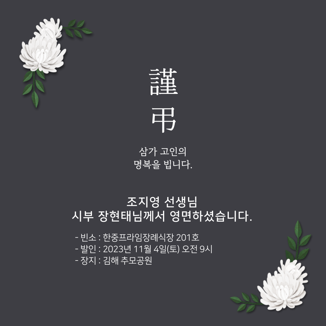 협회 회원이신 조지영 선생님 시부께서 영면하셨습니다.