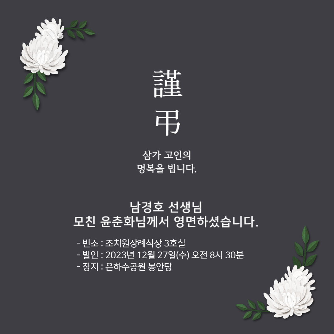 - 발인: 2023년 12월 27일(수) 8시 30분