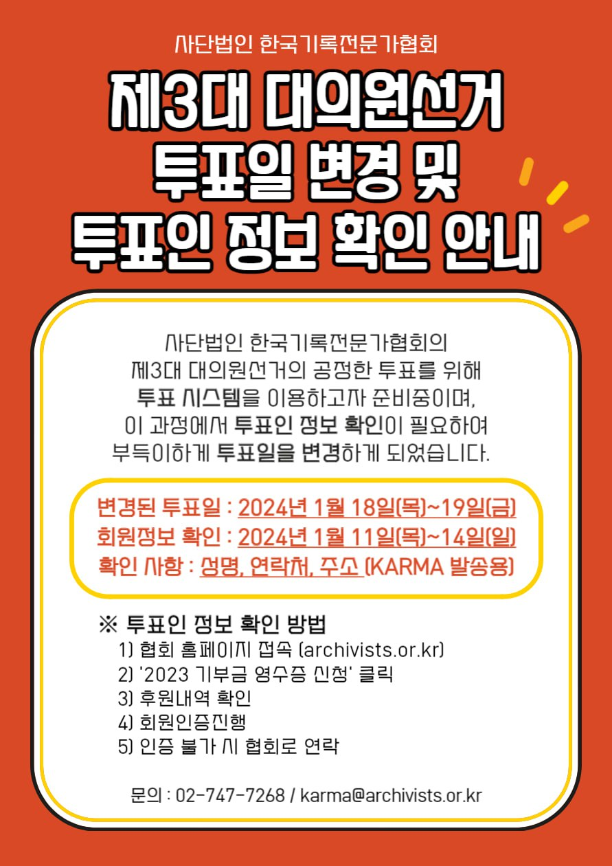 사단법인 한국기록전문가협회 제3대 대의원선거의 공정한 투표를 위해