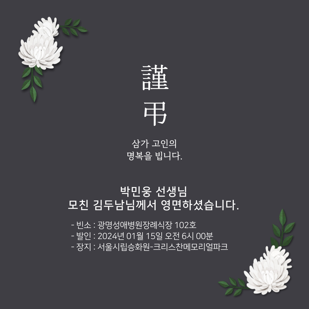 - 발인: 2024년 1월 15일 (월) 오전 6시 00분