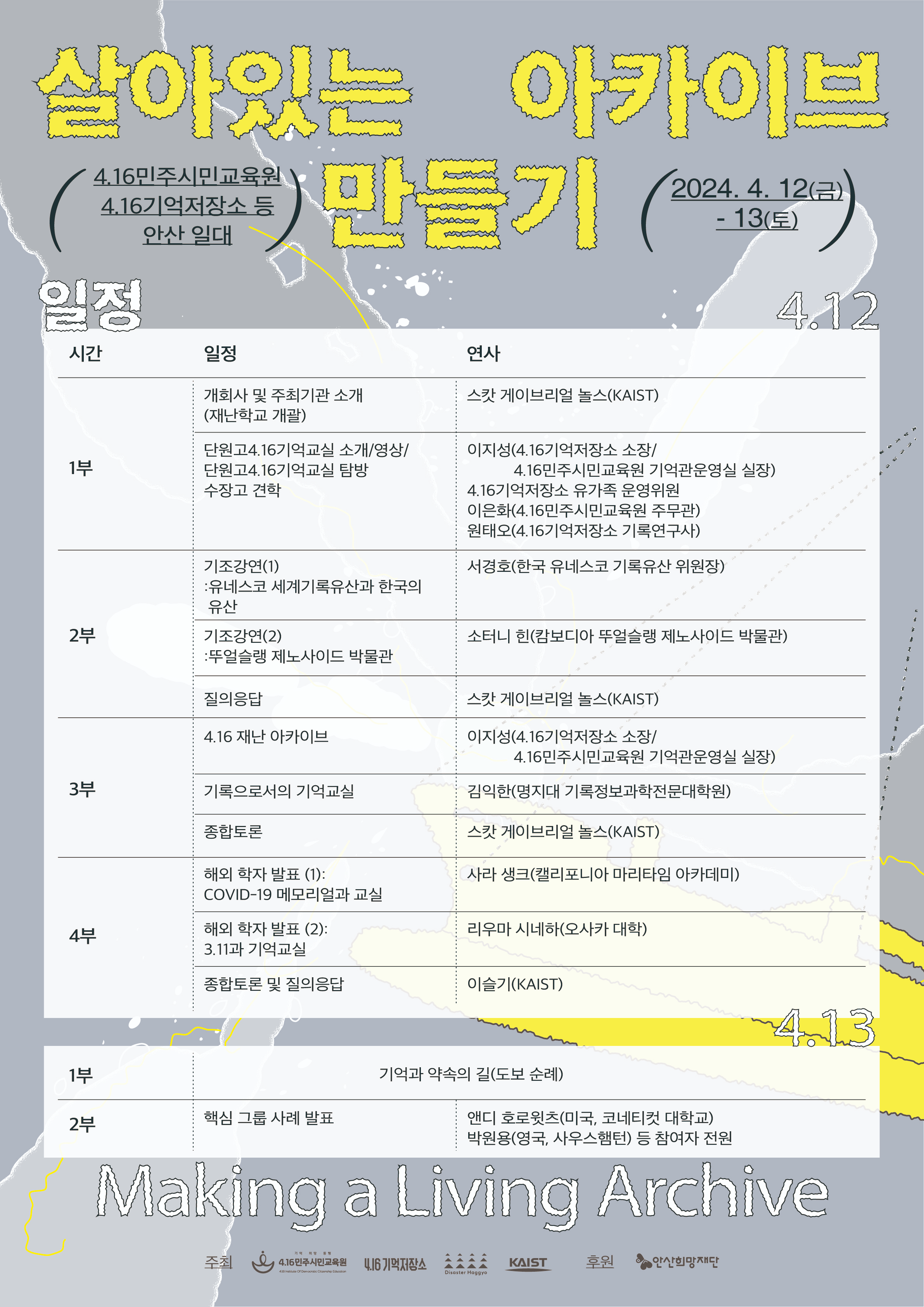 국제학술대회 '살아있는 아카이브 만들기: 재난공간기록 단원고 4.16기억교실의 미래'를 개최합니다.