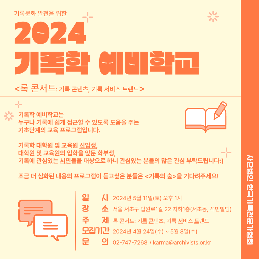 2024 기록학 예비학교가 5월 11일 토요일, 서울에서 진행됩니다.