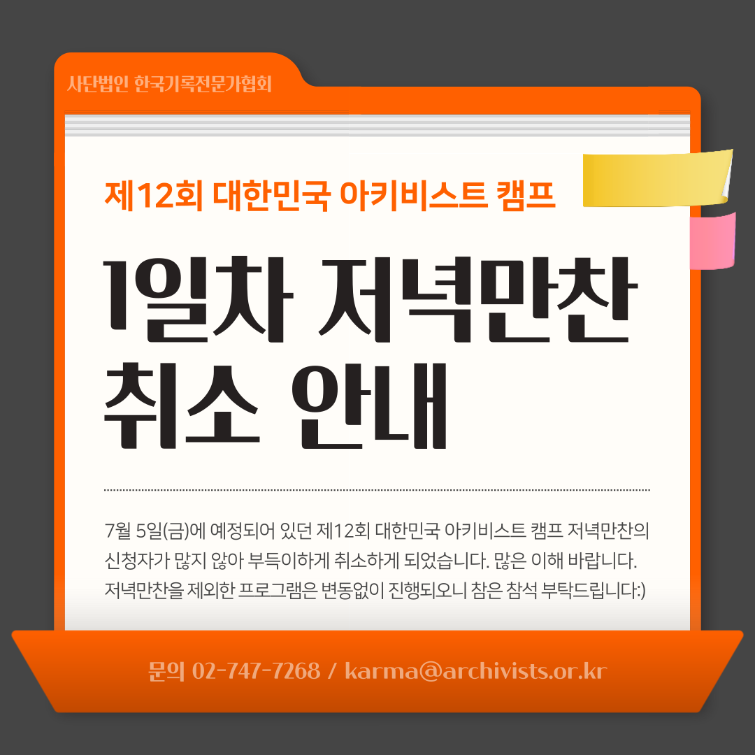 [공지] 제12회 대한민국 아키비스트 캠프 저녁만찬 취소 안내