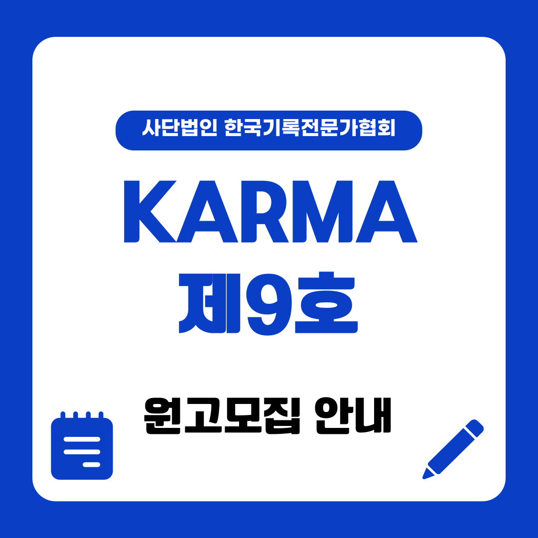 사단법인 한국기록전문가협회 기관지 KARMA 제9호 원고를 모집합니다.