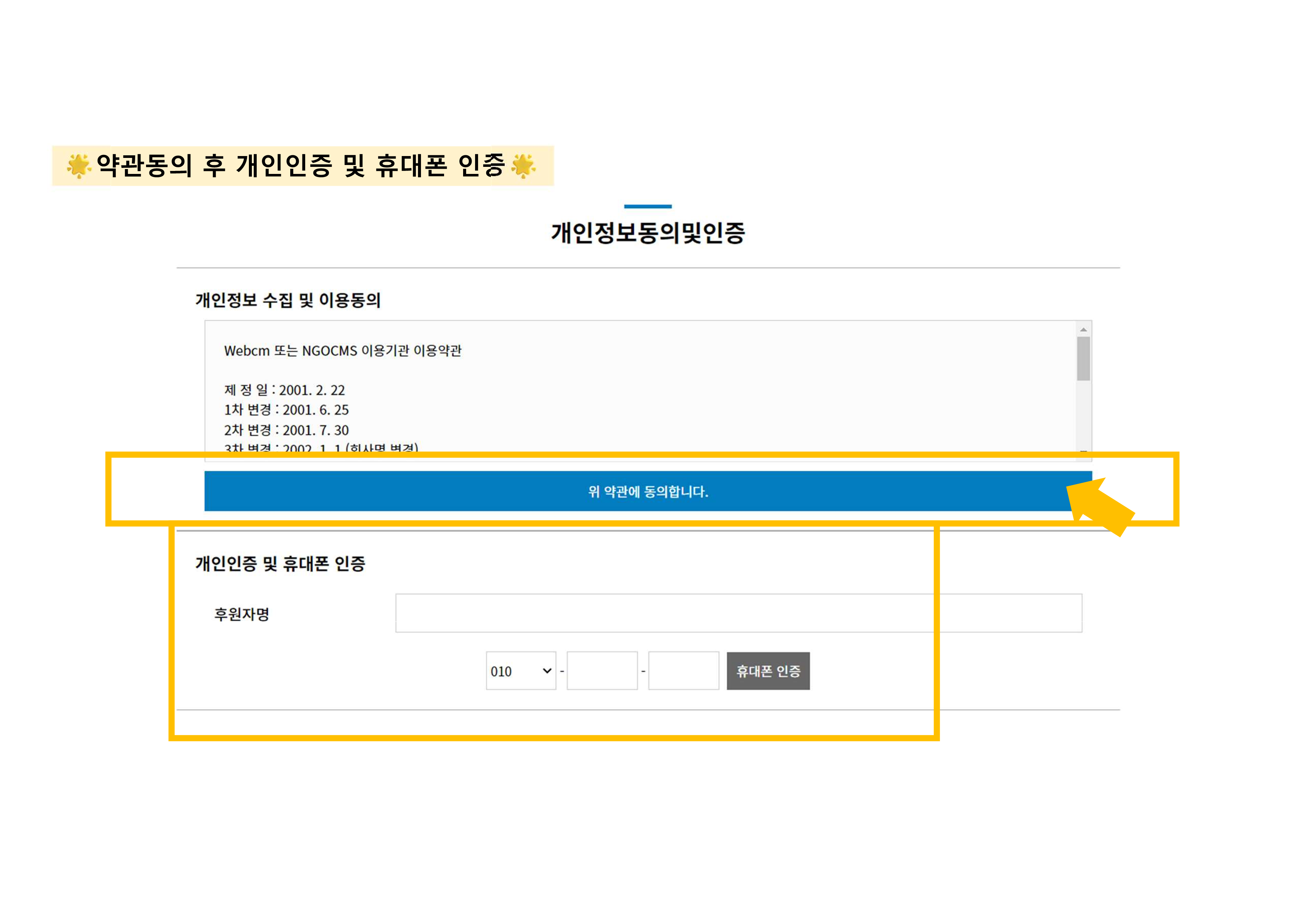 2️⃣개인정보 수집 및 이용동의 후 개인인증 및 휴대폰인증 진행