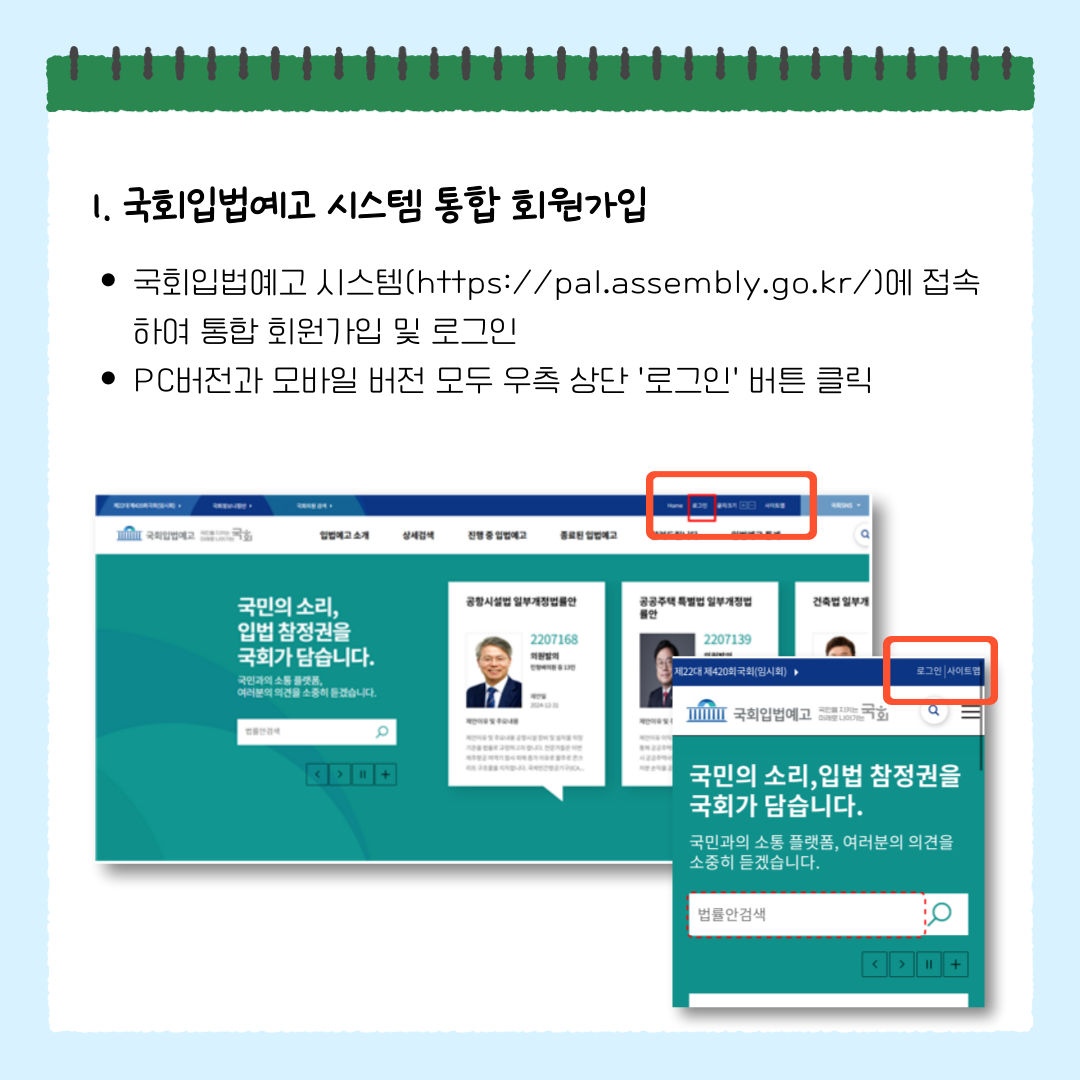 1️⃣ 국회입법예고 시스템(https://pal.assembly.go.kr/) 통합 회원가입