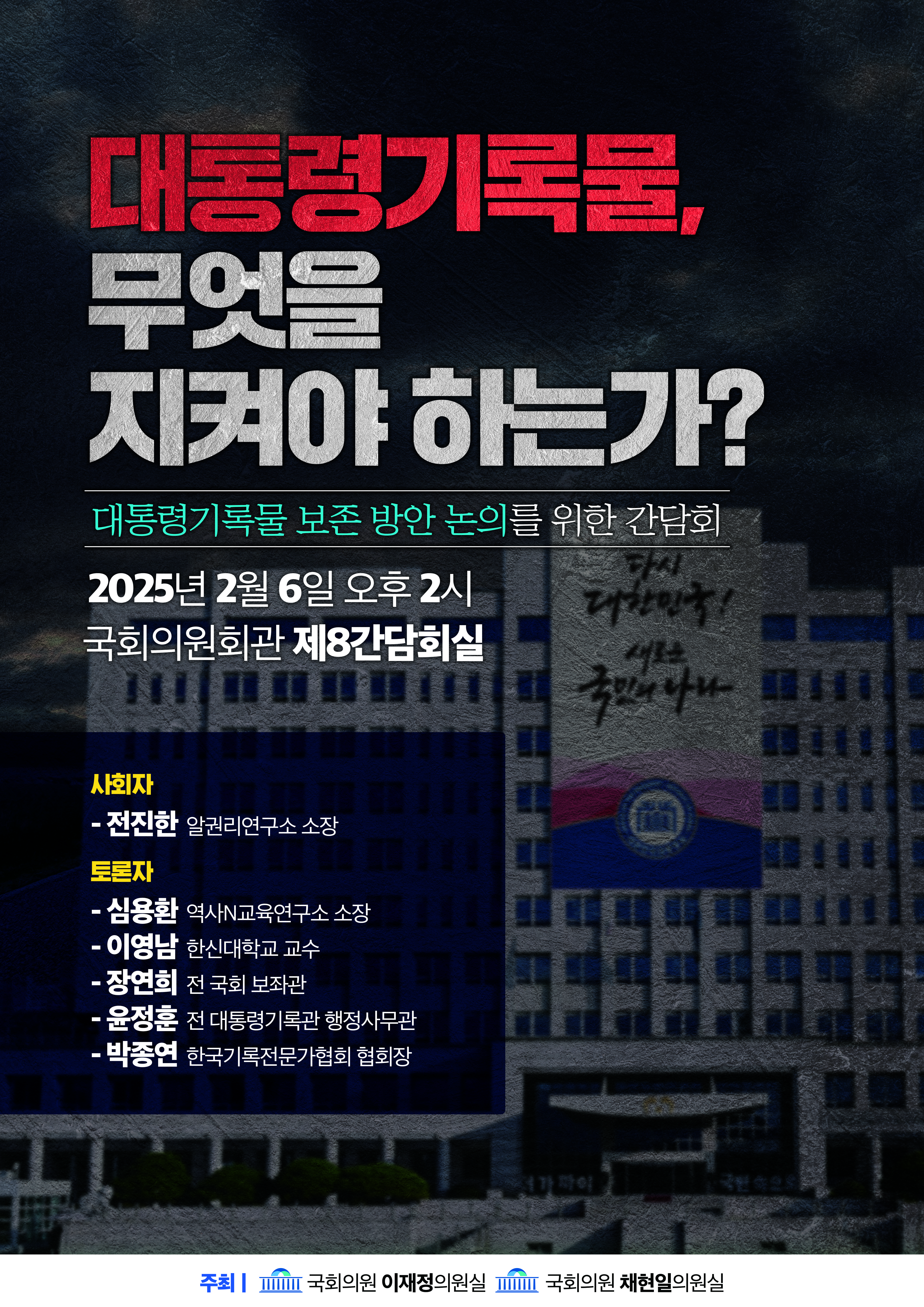 대통령기록물의 보존 방안이라는 주제 혹은 해당 간담회에 관심있으신 분들은 아래 이미지를 참고하시기 바랍니다.