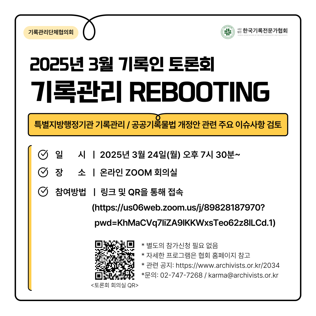 ➡️ 행사명: 2025년 3월 기록인 토론회 : 기록관리 REBOOTING