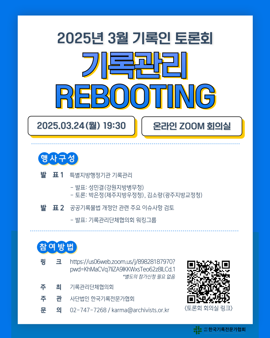 ✅ 행사명: 2025년 3월 기록인 토론회 : 기록관리 REBOOTING