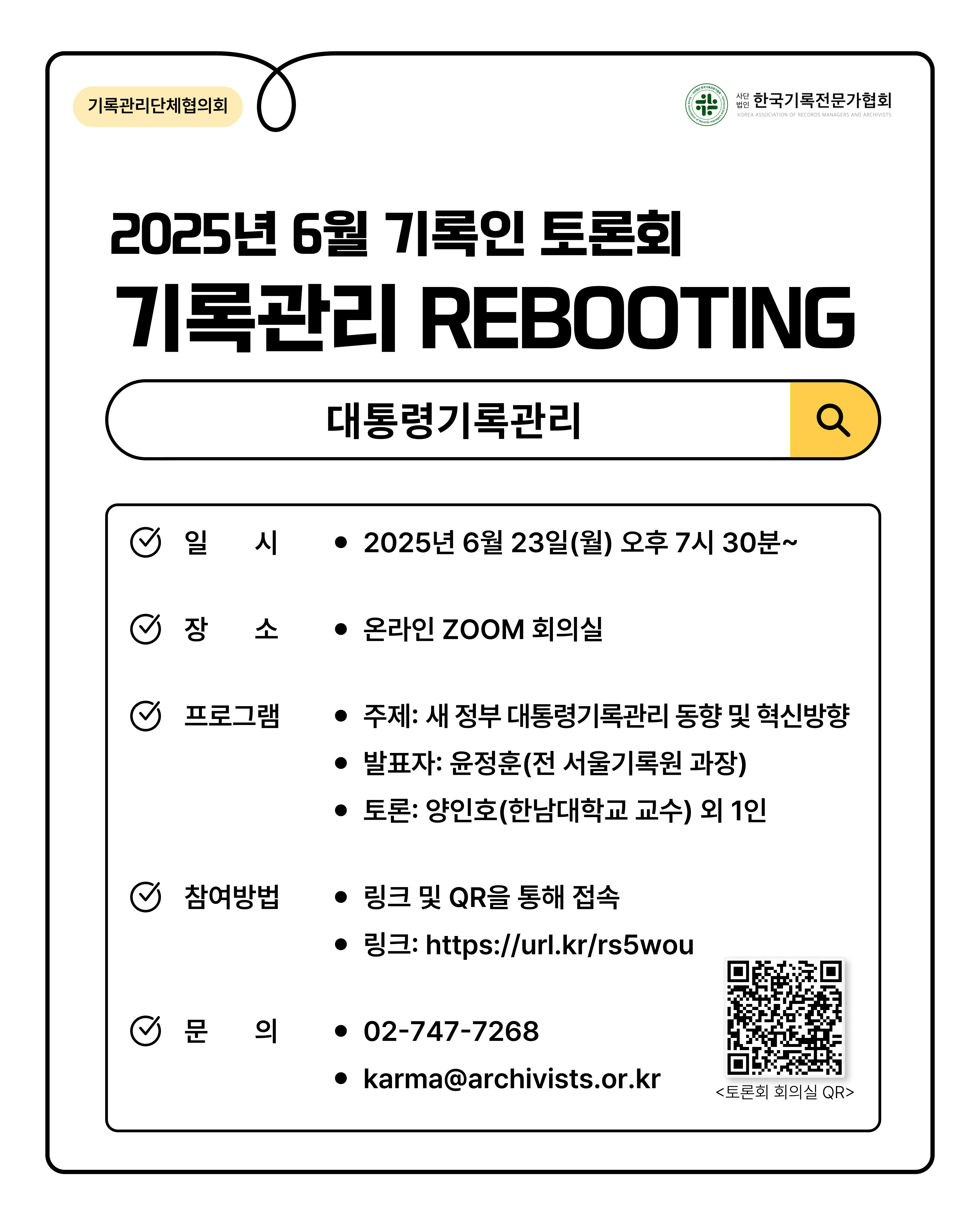 [공지]2025년 6월 기록인 토론회 : 기록관리 REBOOTING 안내