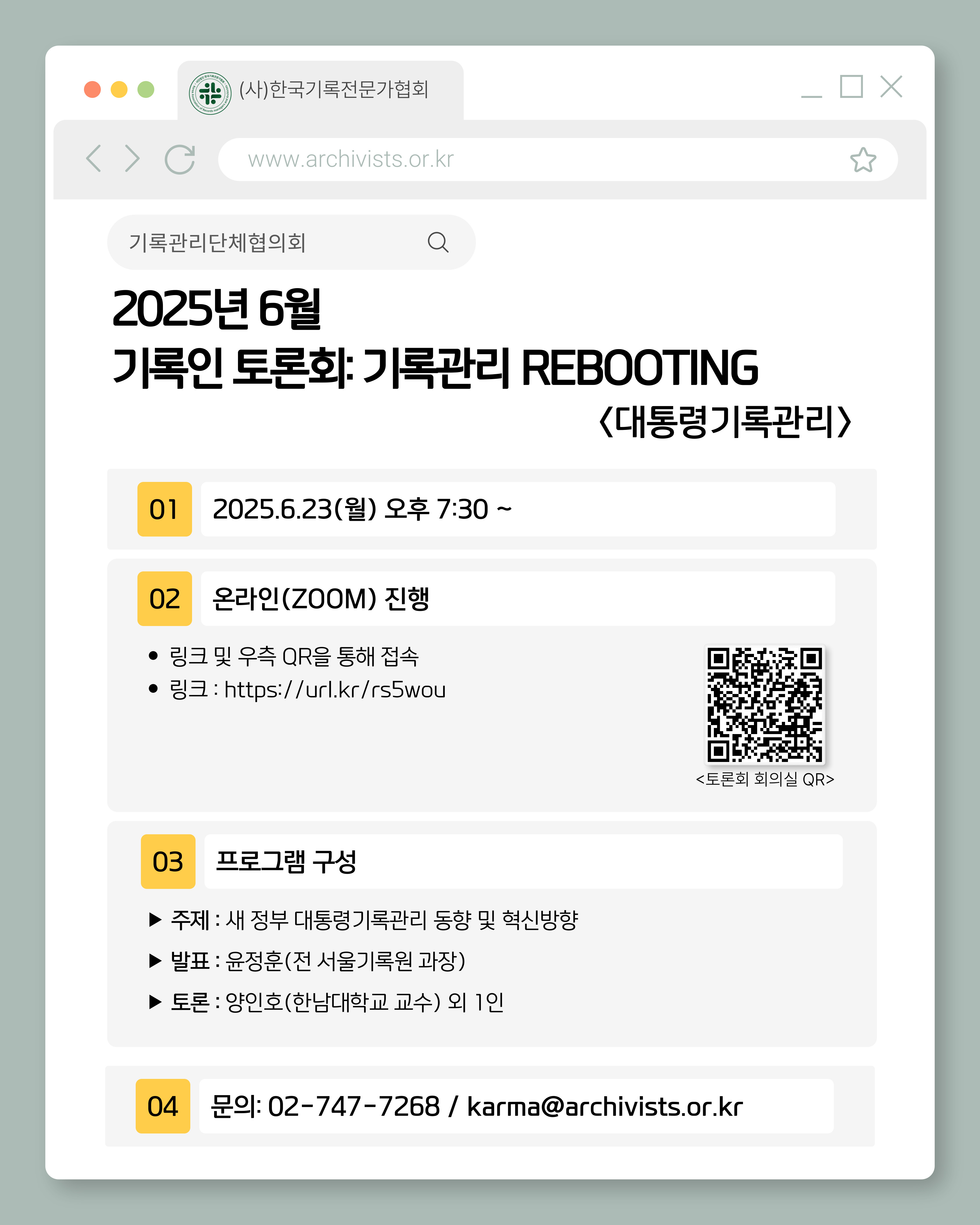 ☑️ 행사명: 2025년 6월 기록인 토론회 : 기록관리 REBOOTING