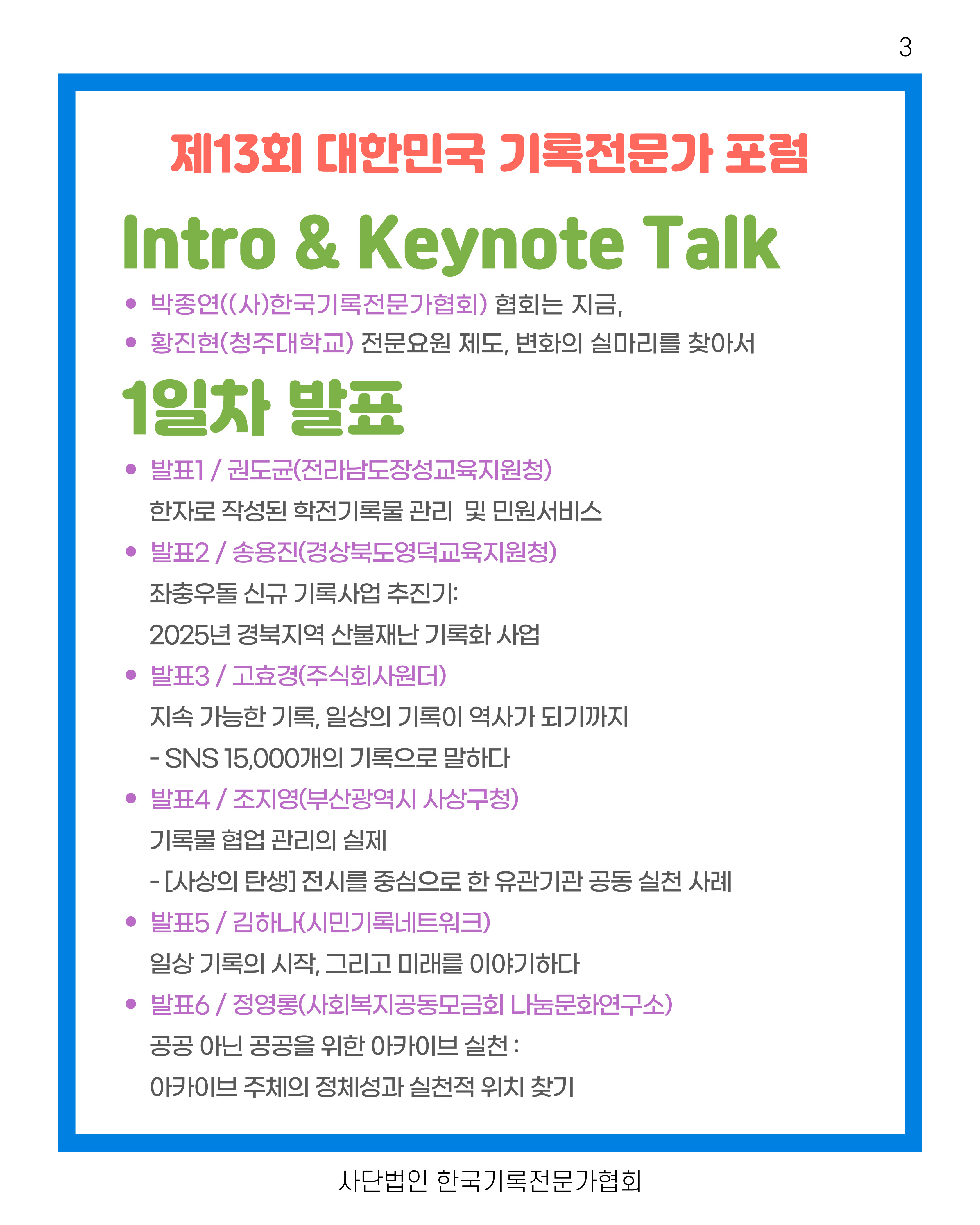 2025. 6. 26. 14:07ㆍ교육사업/대한민국 기록전문가 포럼(구 아키비스트 캠프)