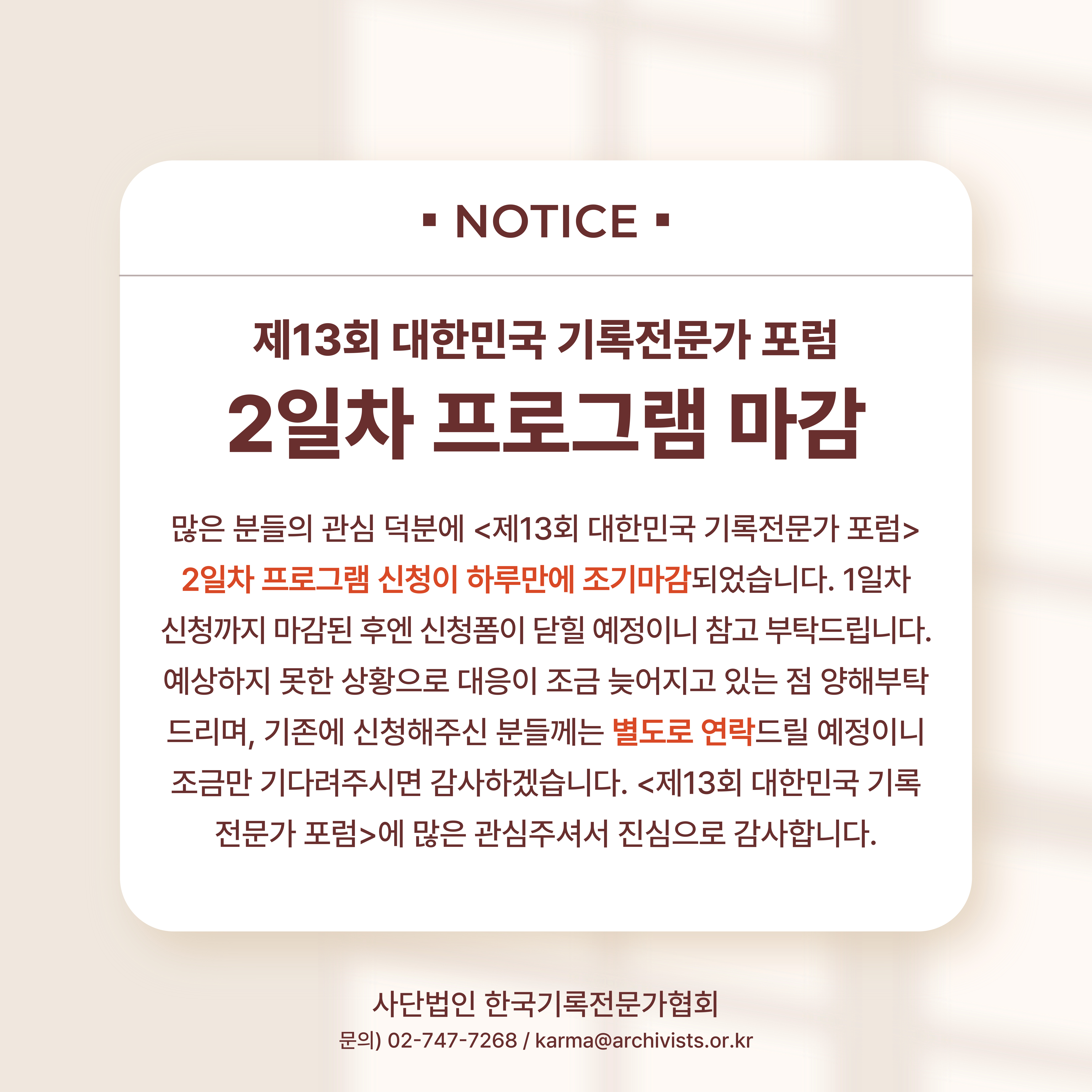 [공지] 제13회 대한민국 기록전문가 포럼 2일차 프로그램 마감 안내