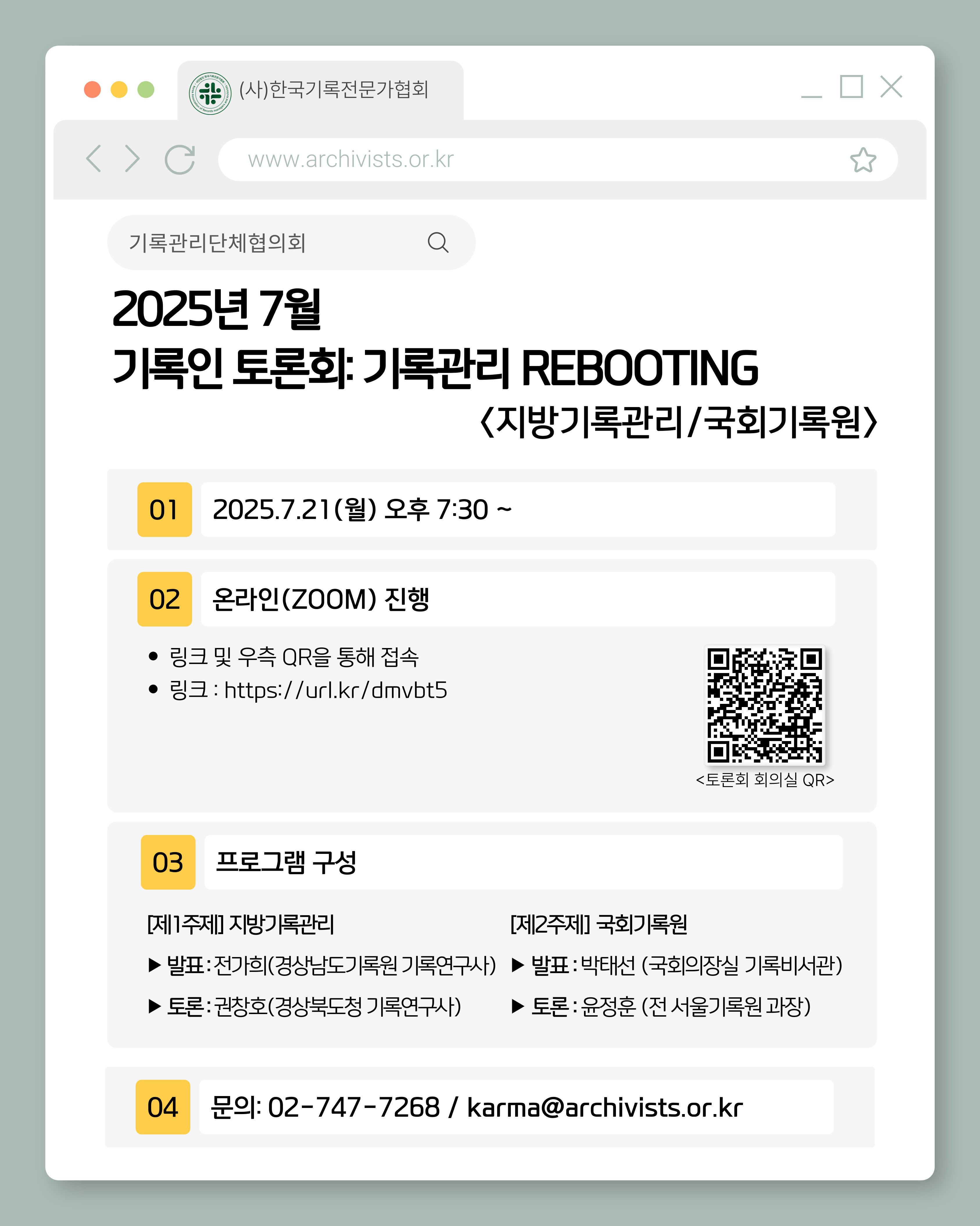 [공지] 2025년 7월 기록인 토론회 : 기록관리 REBOOTING 재안내