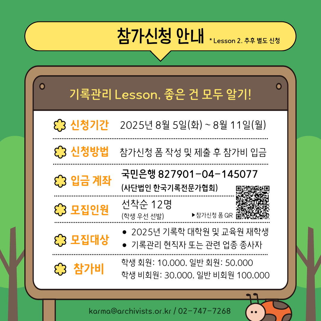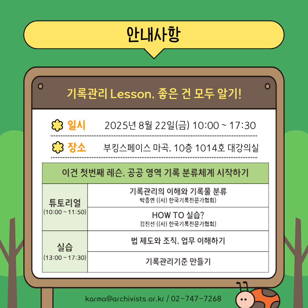 * 2025 기록의 숲 및 회원가입 문의 : karma@archivists.or.kr/ 02-747-7268