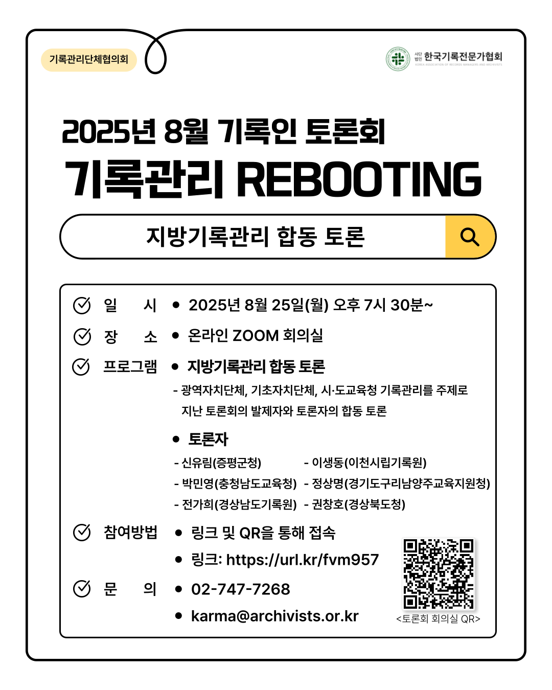➡️ 행사명: 2025년 8월 기록인 토론회 : 기록관리 REBOOTING