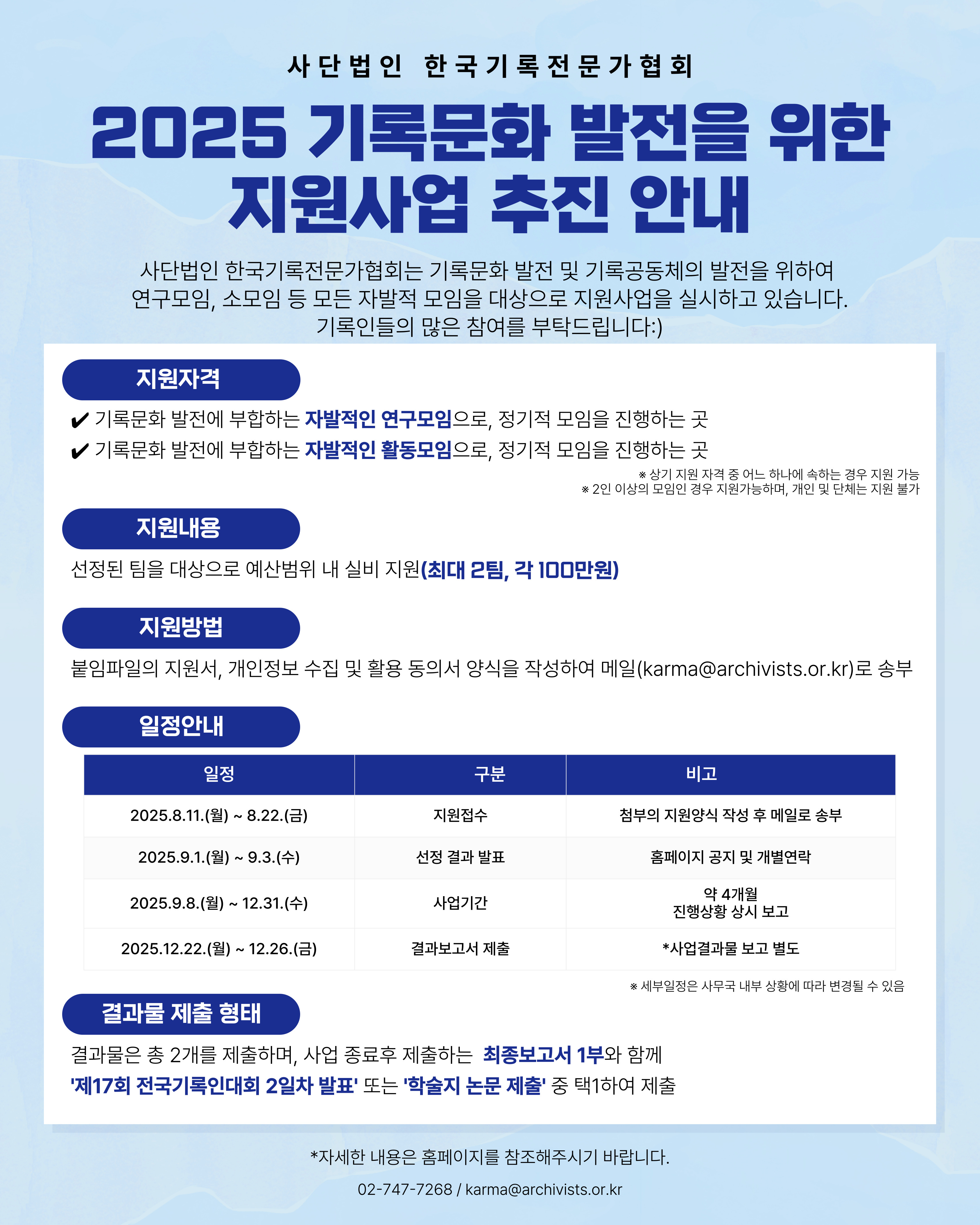 2025. 8. 11. 15:36ㆍ지원사업/기록문화 발전을 위한 지원사업
