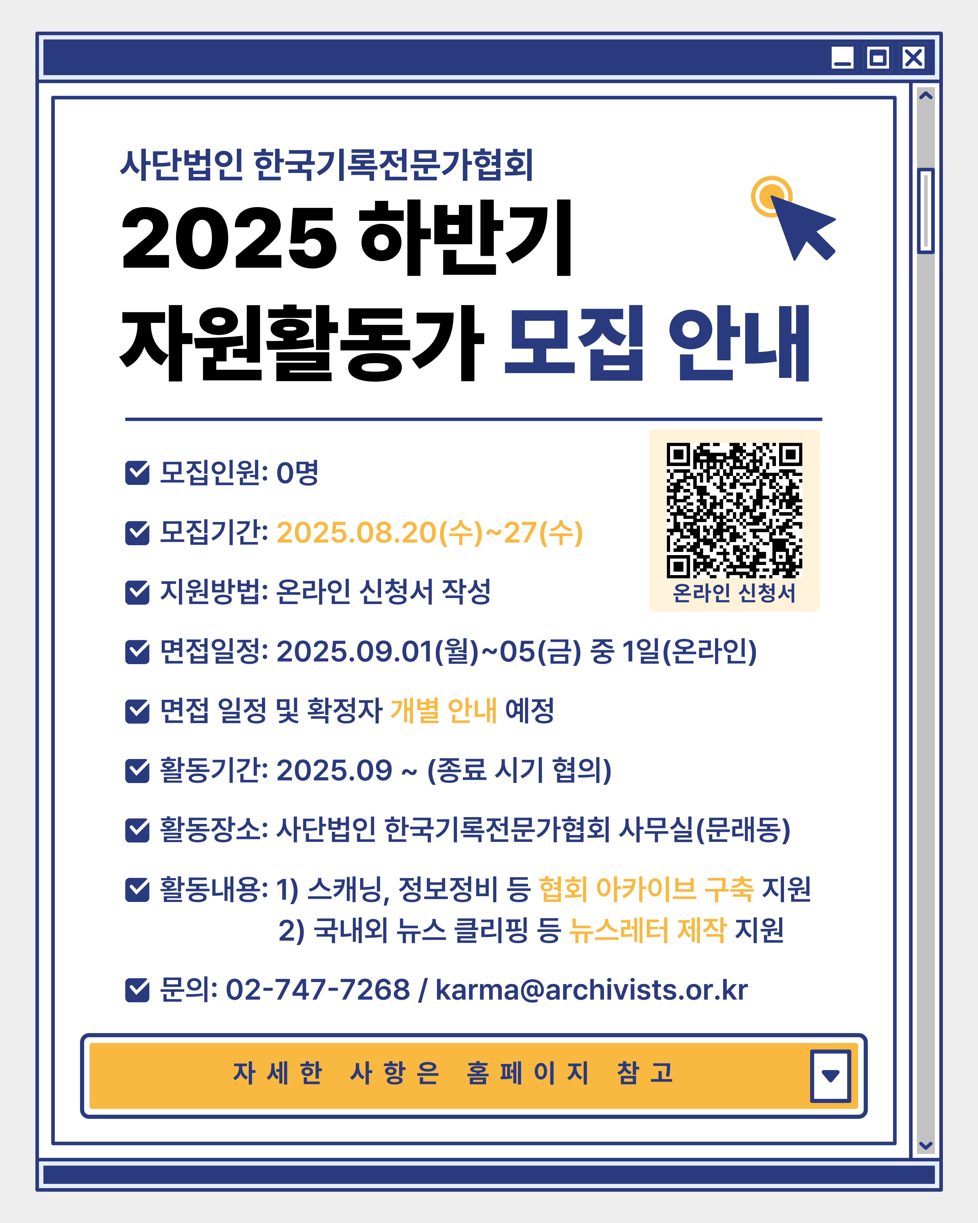 ■ 문의연락 : 02-747-7268 / karma@archivists.or.kr