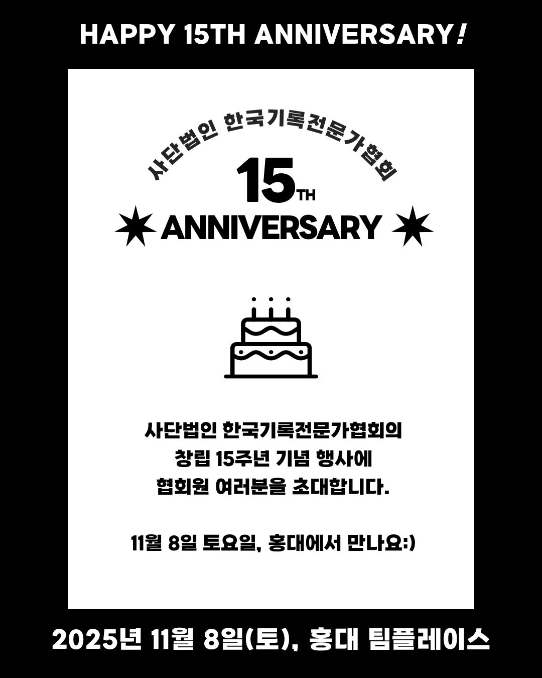 🎈사단법인 한국기록전문가협회 창립 15주년 기념 행사 안내🎈