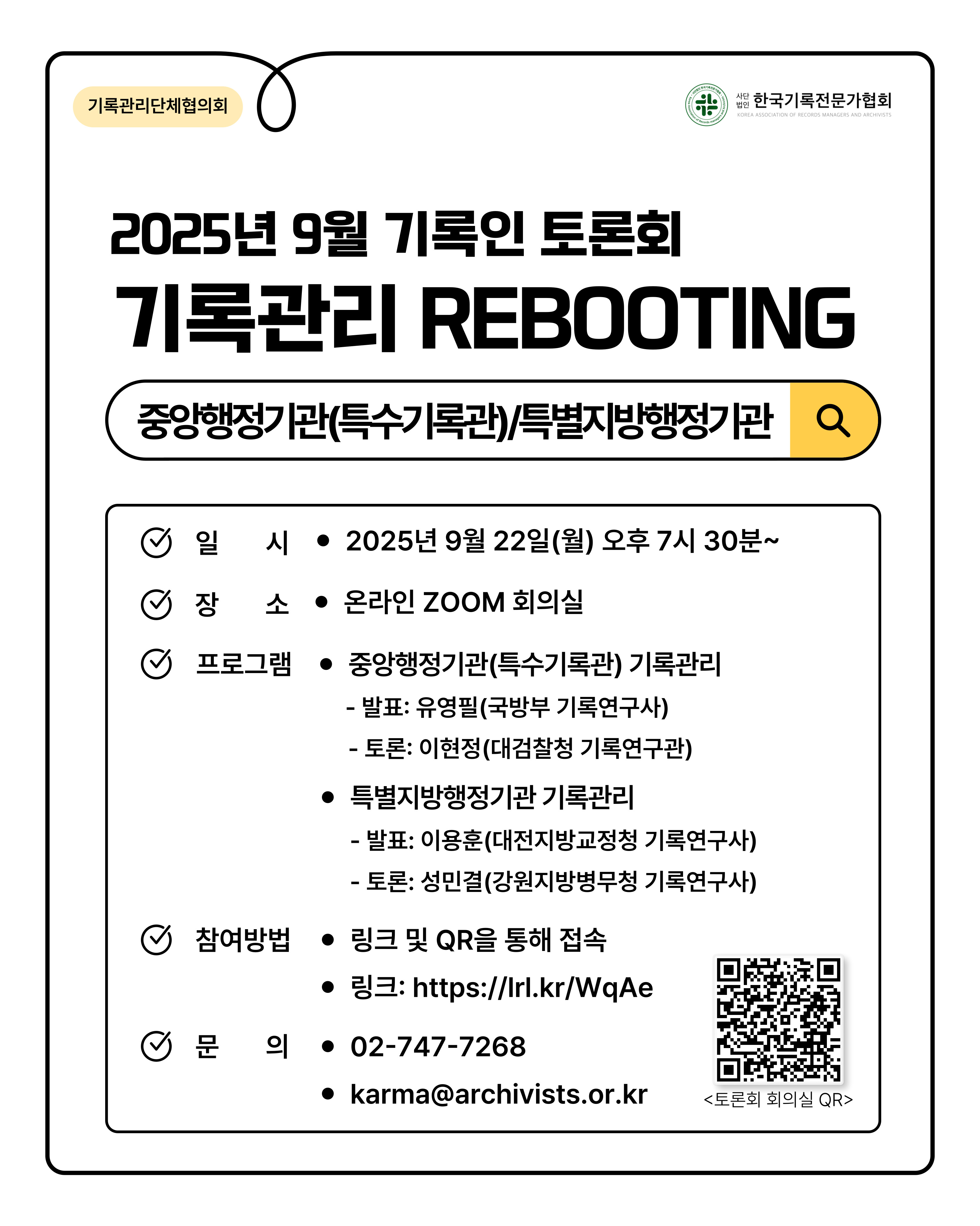 ➡️ 행사명: 2025년 9월 기록인 토론회 : 기록관리 REBOOTING