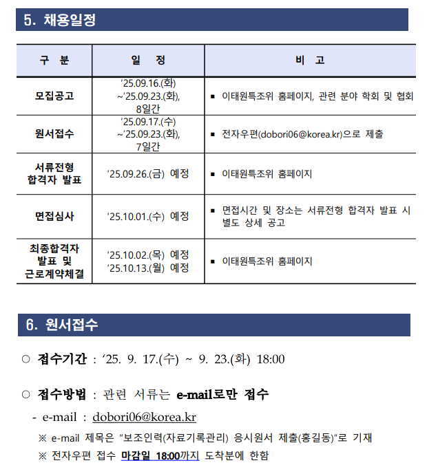 [채용공고] 10.29 이태원참사특별조사위원회 보조인력 채용 안내