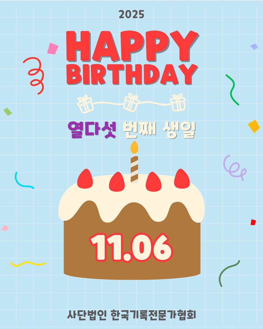 2025년 11월 6일, 사단법인 한국기록전문가협회가 열다섯 번째 생일을 맞이하였습니다😄