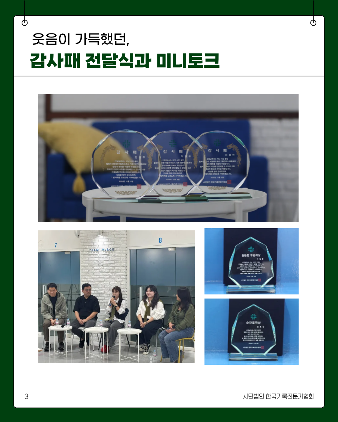 협회는 앞으로도 기록전문가의 성장과 기록문화 발전을 위해 꾸준히 나아가겠습니다.