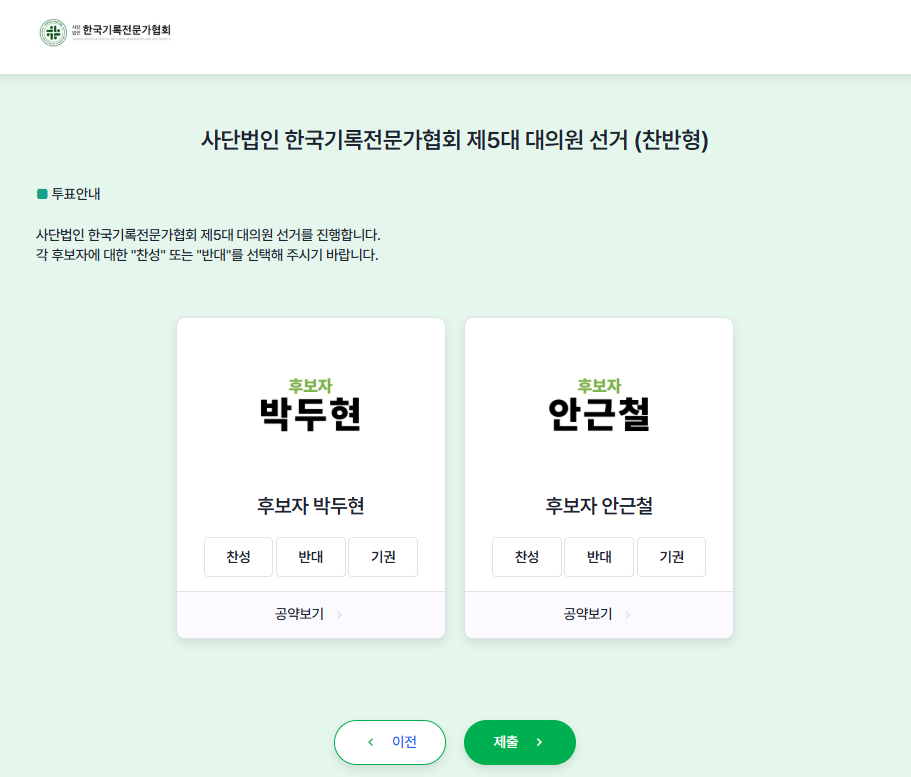 사단법인 한국기록전문가협회 제5대 대의원선거는 공정한 투표를 위해